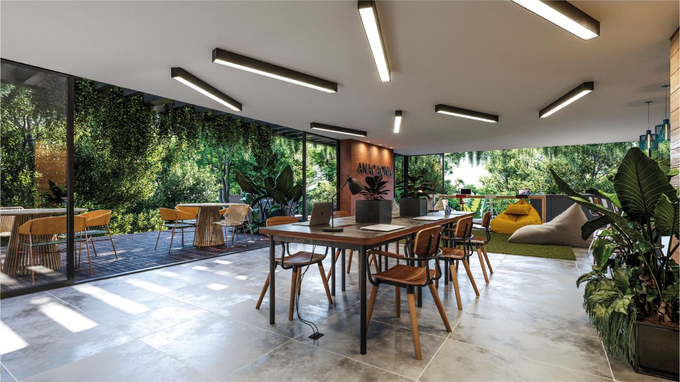 Anacaona ubicada en un céntrico sector del municipio de Itagüí está conformada por dos torres con todos los servicios: dos ascensores por torre, shut de basuras, parqueaderos comunales, portería 24 horas, piscina para adultos y niño, salón social gimnasio y co-working.
