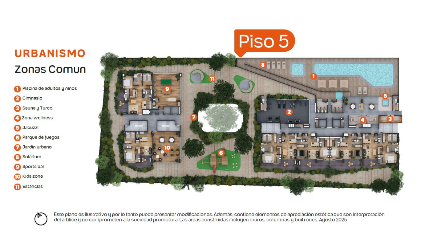 Gimnasio, Zona Wellness, Sauna y turco, Jacuzzi, Piscina de adultos y niños, Solárium, Parque de juegos, Cancha Cittadel, Zona pet, Social kitchen y salón social, Mirador, Jardín urbano, Fire pit (zona de fogatas), Kids zone, Sports bar, Bicicletero.