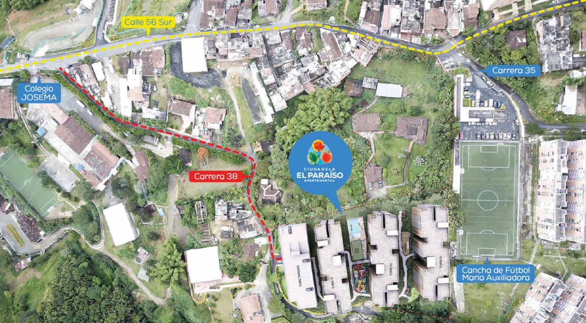 Ciudadela el Paraíso se encuentra ubicado en el municipio de Sabaneta, en el sector María Auxiliadora a 7 cuadras de la Av. El Poblado, es un sector de alta valorización.
