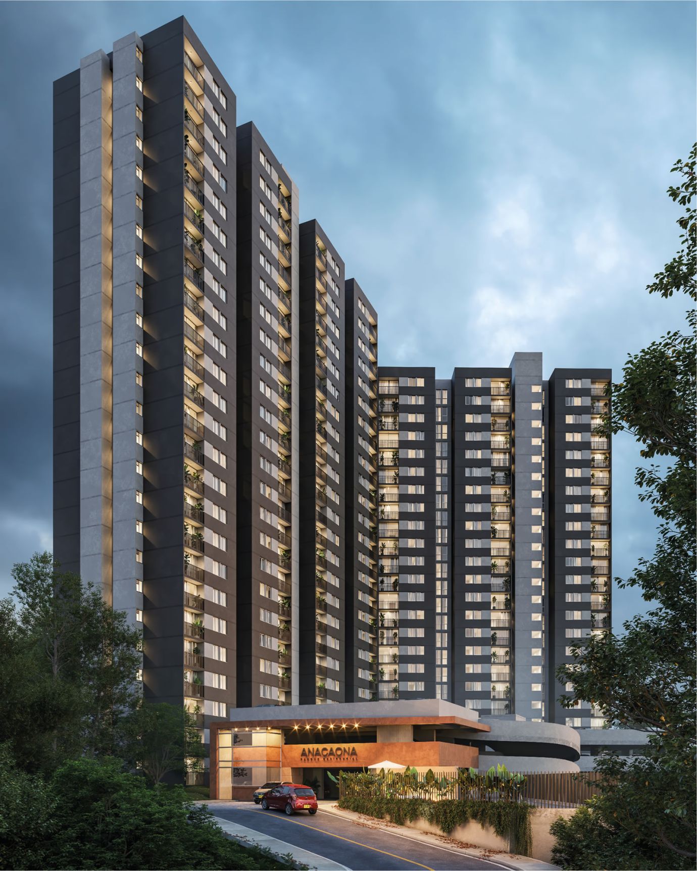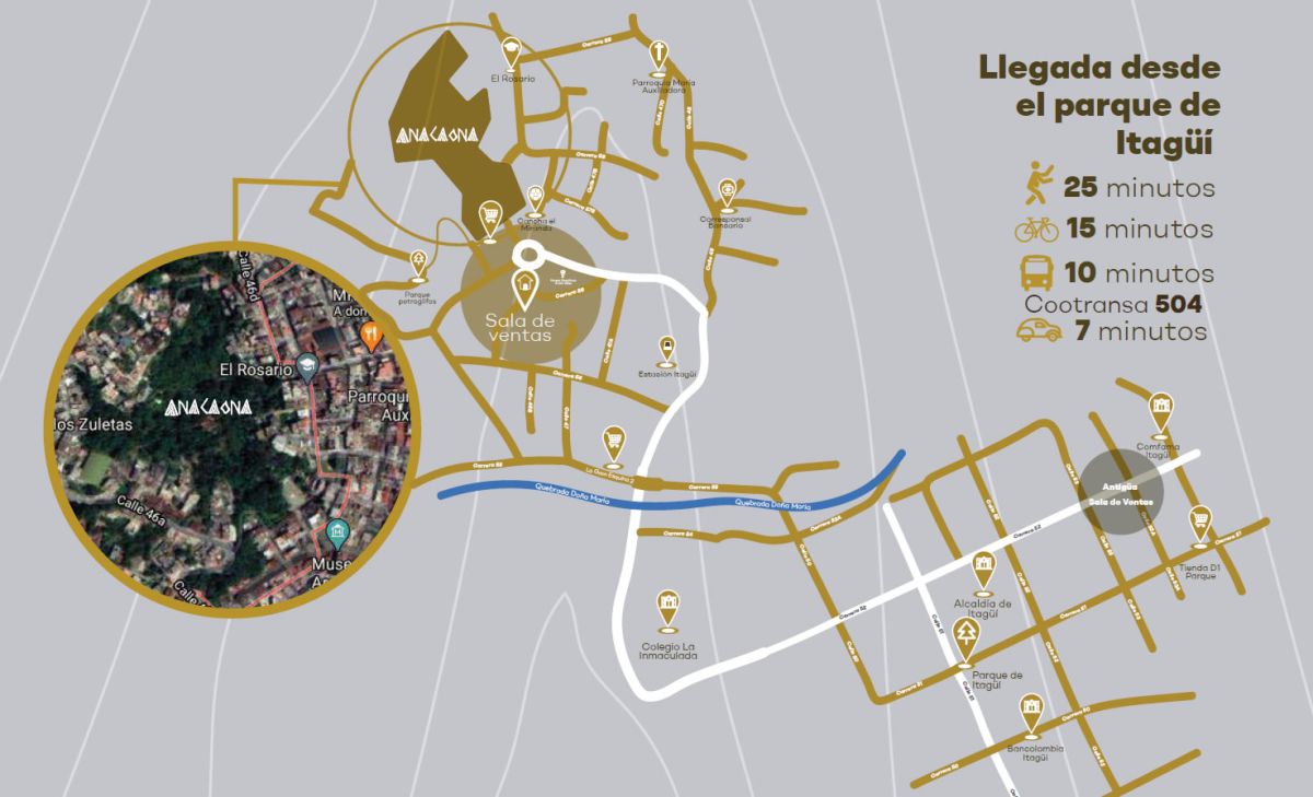 Anacaona ubicada en un céntrico sector del municipio de Itagüí está conformada por dos torres con todos los servicios: dos ascensores por torre, shut de basuras, parqueaderos comunales, portería 24 horas, piscina para adultos y niño, salón social gimnasio y co-working.