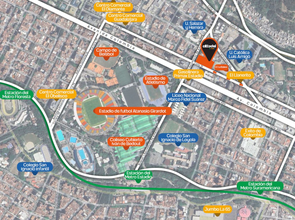 Cerca puntos estratégicos como el Estadio Atanasio Girardot, El Obelisco, Universidad UPB, Universidad Luis Amigo, Centro comercial Unicentro y mucho más.
